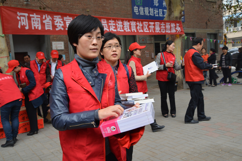10月31日下午,一場精彩的小型文藝演出在鄭州市緯五路省教育社區(qū)舉行。演出期間,志愿者向現(xiàn)場觀看的居民免費贈送圖書、報紙和DVD。據(jù)了解,這是省委宣傳部開展的黨員志愿服務(wù)進社區(qū)活動。