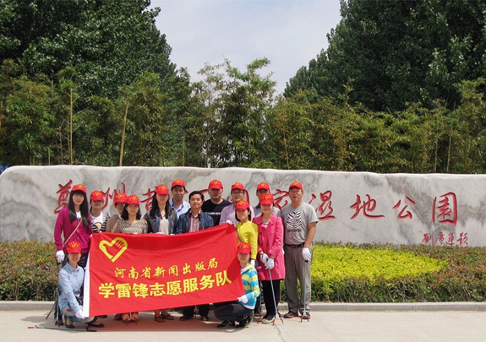為大力踐行社會主義核心價值觀,引導(dǎo)局直系統(tǒng)黨員干部帶頭“做文明人、辦文明事”,五一小長假后的第一天,省新聞出版局15名青年志愿者在局直機(jī)關(guān)黨委專職副書記張培明同志的帶領(lǐng)下,一起到黃河濕地公園開展了“傳承五四薪火•志愿潔凈家園”清撿垃圾活動。經(jīng)和有關(guān)工作人員溝通,我們將活動的重點區(qū)域定在平日清潔人員疏于打掃的大道附近的草叢樹林里。志愿者們領(lǐng)到工具后,兩人一組,三人一隊,發(fā)揚(yáng)不怕臟、不怕累的精神,默契配合,清理的垃圾裝滿了數(shù)十個蛇皮袋。